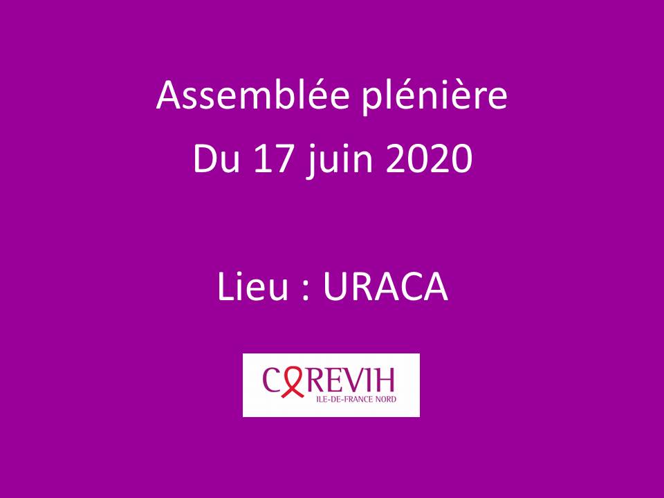 La prochaine ASSEMBLEE PLÉNIÈRE du COREVIH IDF NORD aura lieu le mercredi 17 juin 2020 de 18h00 à 20h00 dans les locaux d’URACA (à confirmer).