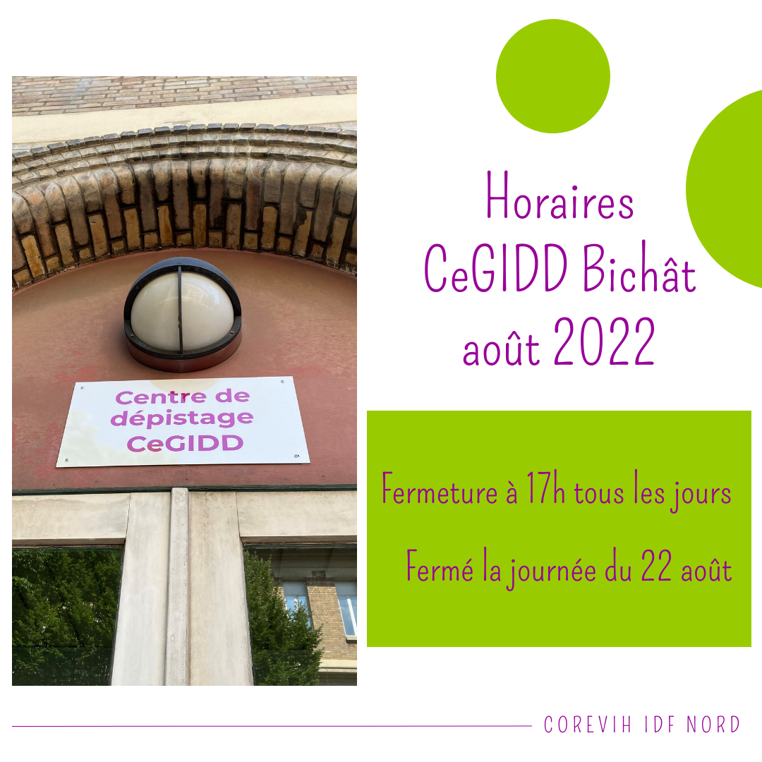 Attention, les horaires du CeGIDD de l’Hôpital Bichât Claude Bernard sont modifiés pour le mois d’août :